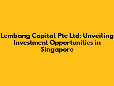 Lembang Capital Pte Ltd: Your Guide To Singapore Investments
